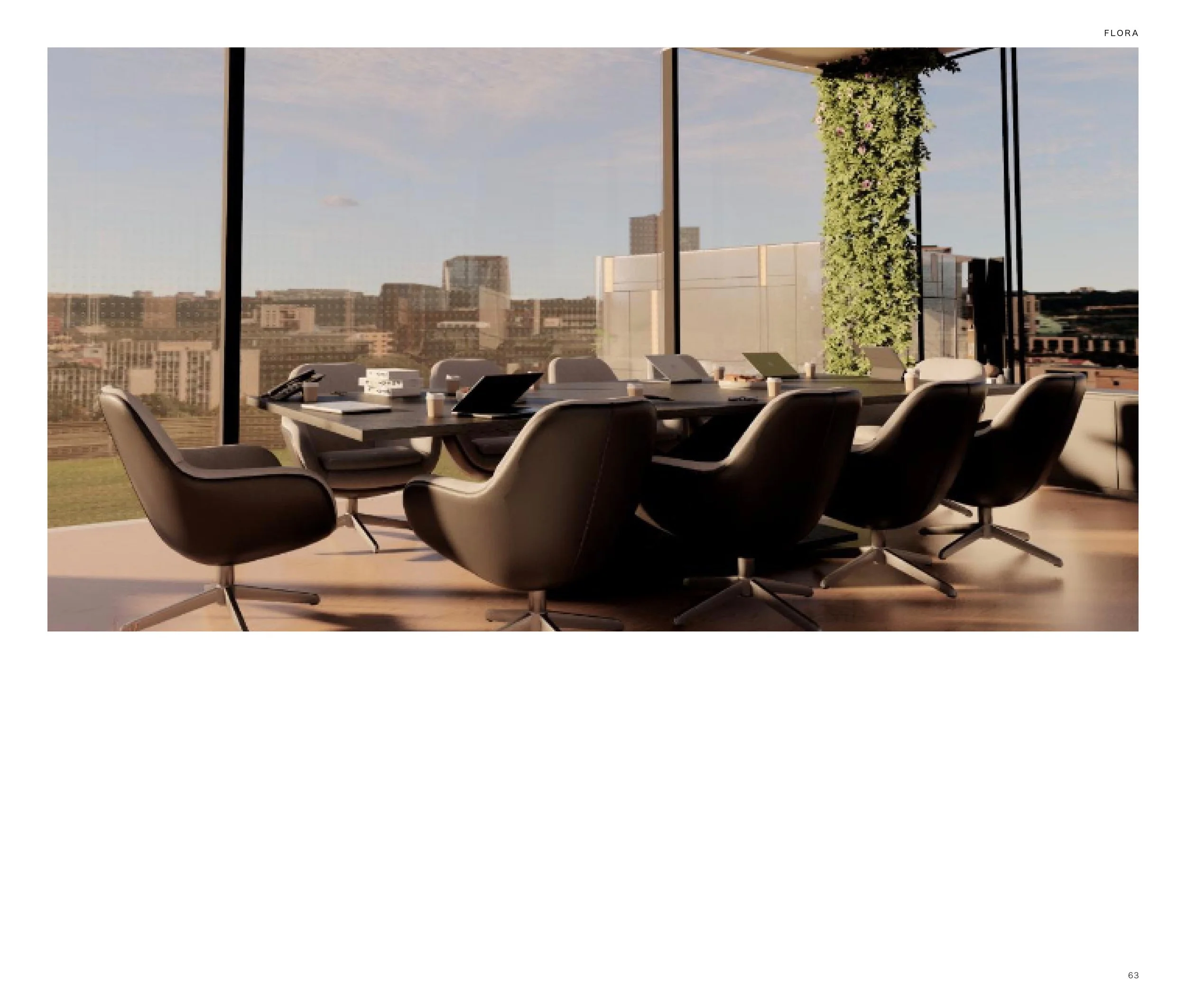 Flora envisions a biophilic commercial environment where light, greenery, and organic materials work together to promote well-being and creativity. The design softens traditional workspaces by blurring the boundary between interior and nature, resulting in environments that feel calm, grounded, and rejuvenating.Through subtle textures and immersive natural elements, Flora transforms daily routines into moments of presence and connection.